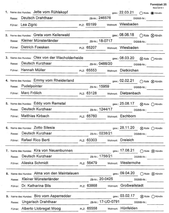 Zur Prüfung waren 9 Hunde gemeldet. Alle 9 waren sehr gut vorbereitet und konnten die Prüfung