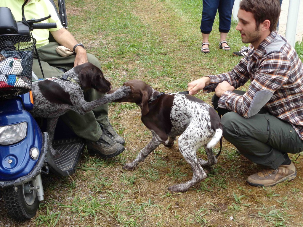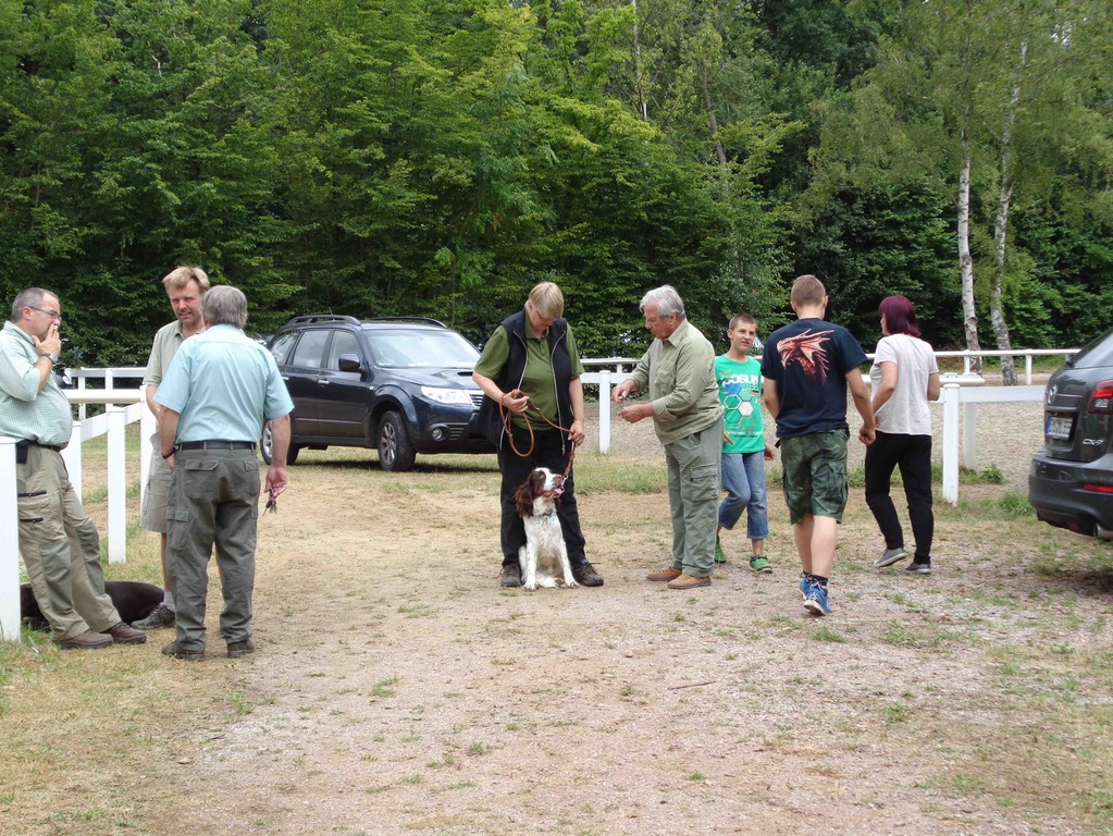 Leider gab es nicht viele Anmeldungen von „Verkäufern“ und so hatten die durchaus interessierten Besucher nur wenig Gelegenheit zum Kauf. Dennoch, bei Grillwürstchen, kühlen Getränken, Kaffee und einer großen Kuchenauswahl bot dieser Tag wieder einen guten Rahmen für interessante Gespräche und Fragen rund um die jagdliche Hundearbeit. Die Besucher hatten außerdem die Möglichkeit, gemeinsam mit ihren Hunden und unter fachlicher Anleitung verschiedene Übungsaufgaben, wie z.B. Schleppenarbeit, zu absolvieren.