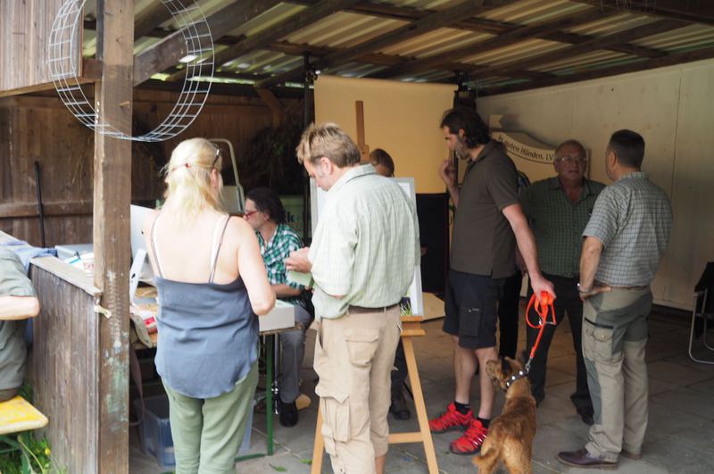 Nach 10.00 Uhr erschienen die ersten Gäste. Wer wollte, konnte das vorbereitete Übungsprogramm mit Haarwild-, Federwildschleppe oder Fuchs über Hindernis wahrnehmen.
