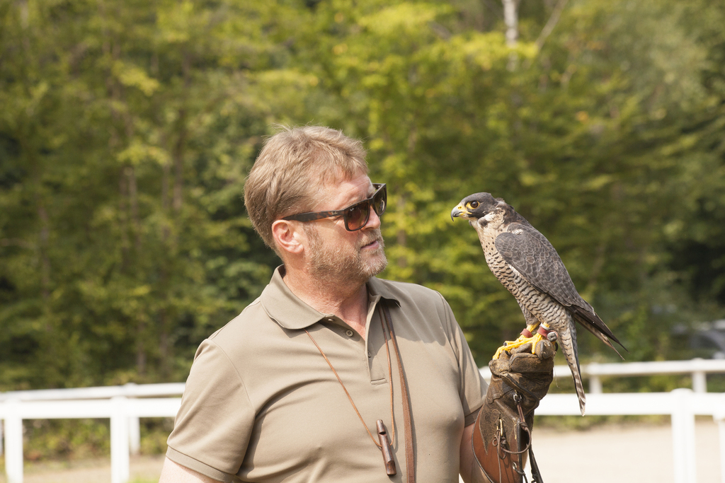 Vom Reiz der Beizjagd berichtete uns der eingeladene Falkner Thomas Schneider mit seinem Jagdfalken. Ausführlich erläuterte er die Arbeit mit seinem Falken. Zahlreiches Zubehör für dieses uralte Handwerk konnten wir kennenlernen.