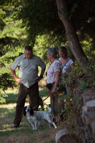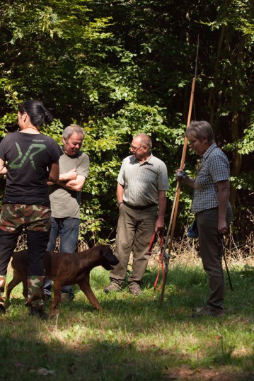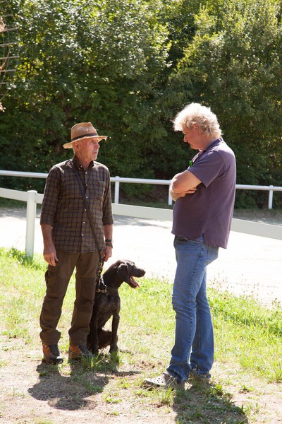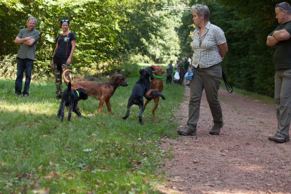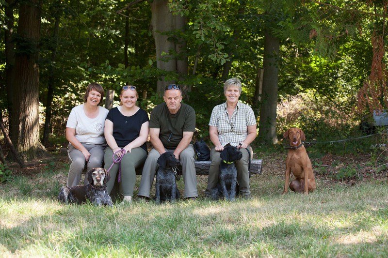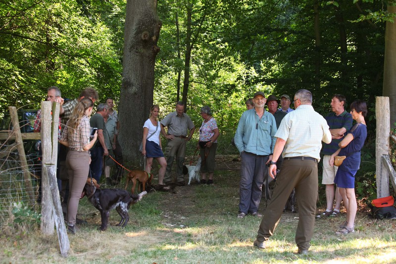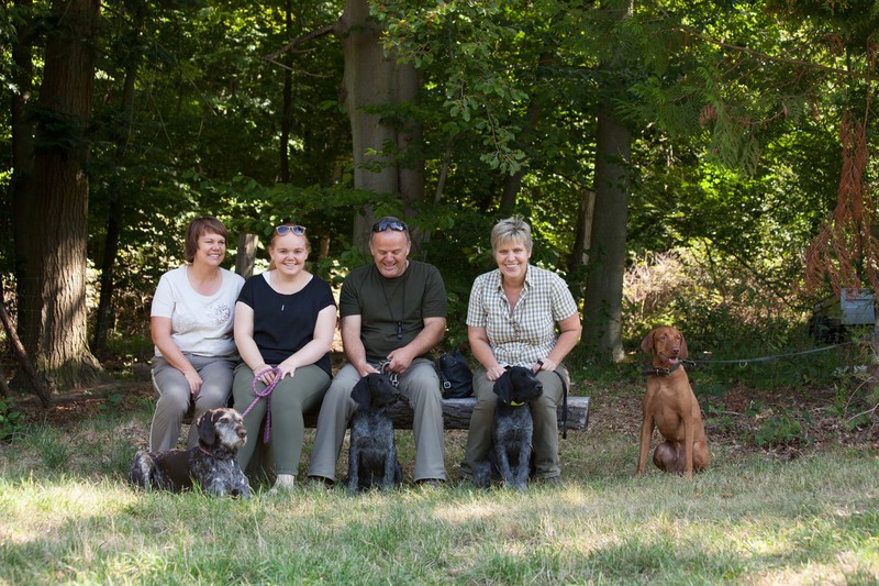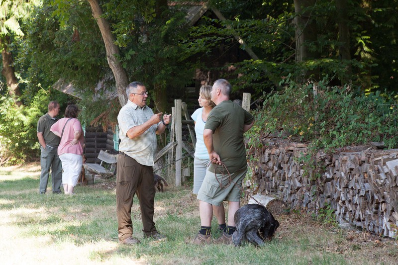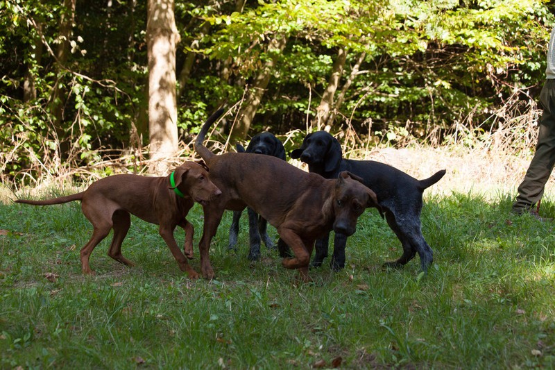 Auch Herr Holzhausen machte bei uns eine neue Erfahrung: Er war erstaunt, dass so zahlreiche mitgebrachte Hunde (siehe Bilder) auf so engem Raum so friedlich und harmonisch miteinander umgehen. Er konnte es sich nur dadurch erklären, dass jagdlich geführte Hunde eine artgemäße Lebensaufgabe haben.