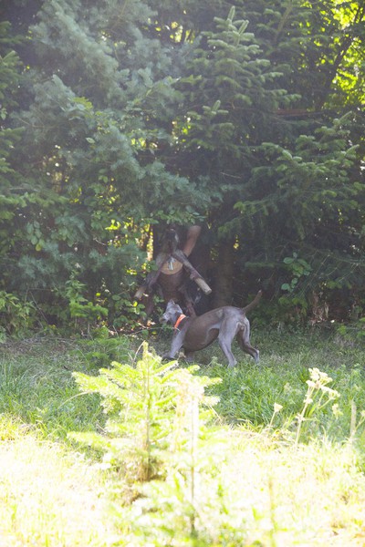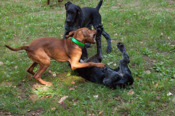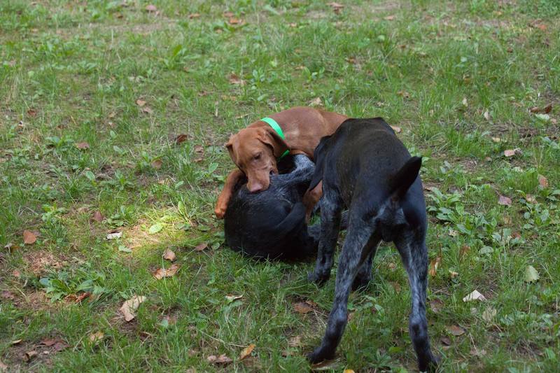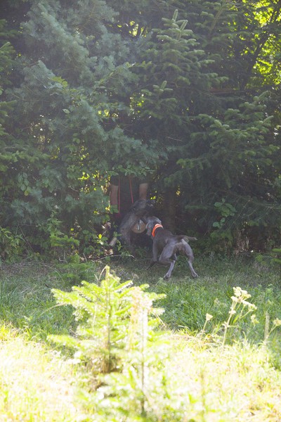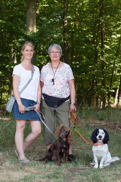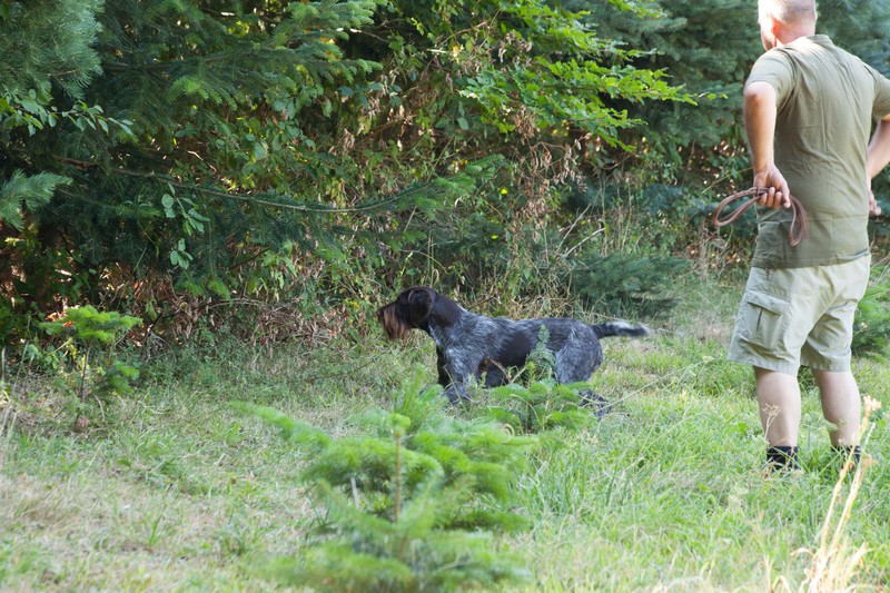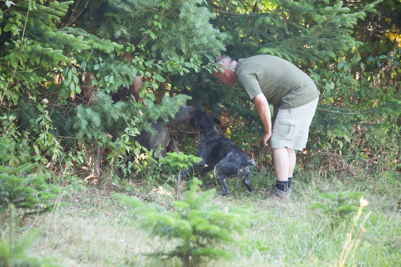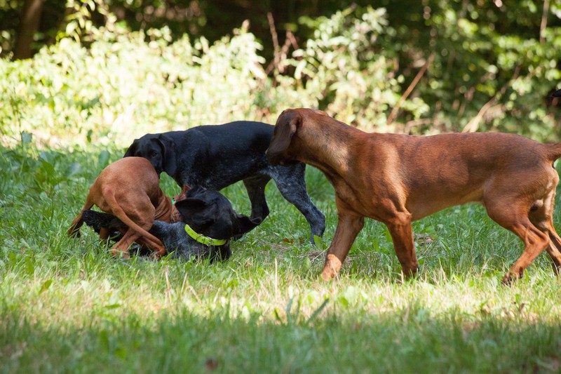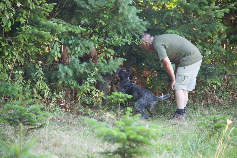Auch Herr Holzhausen machte bei uns eine neue Erfahrung: Er war erstaunt, dass so zahlreiche mitgebrachte Hunde (siehe Bilder) auf so engem Raum so friedlich und harmonisch miteinander umgehen. Er konnte es sich nur dadurch erklären, dass jagdlich geführte Hunde eine artgemäße Lebensaufgabe haben.