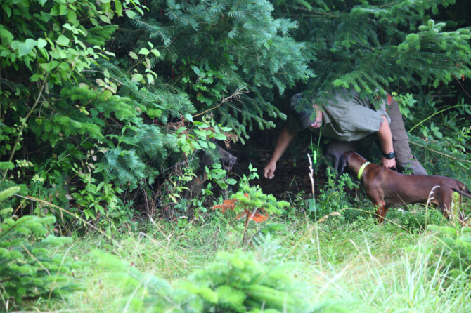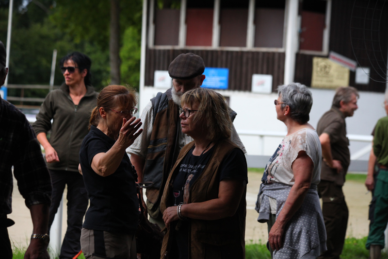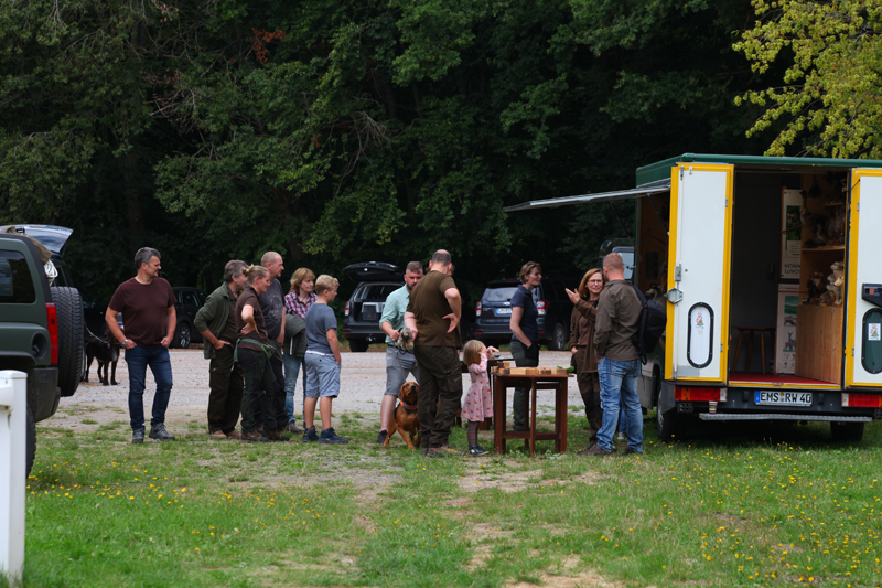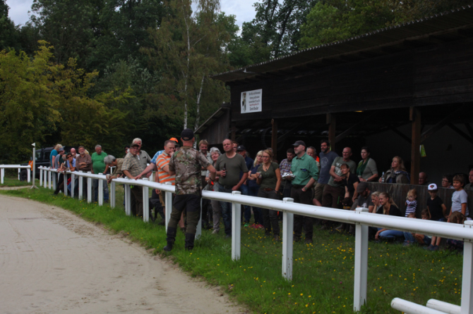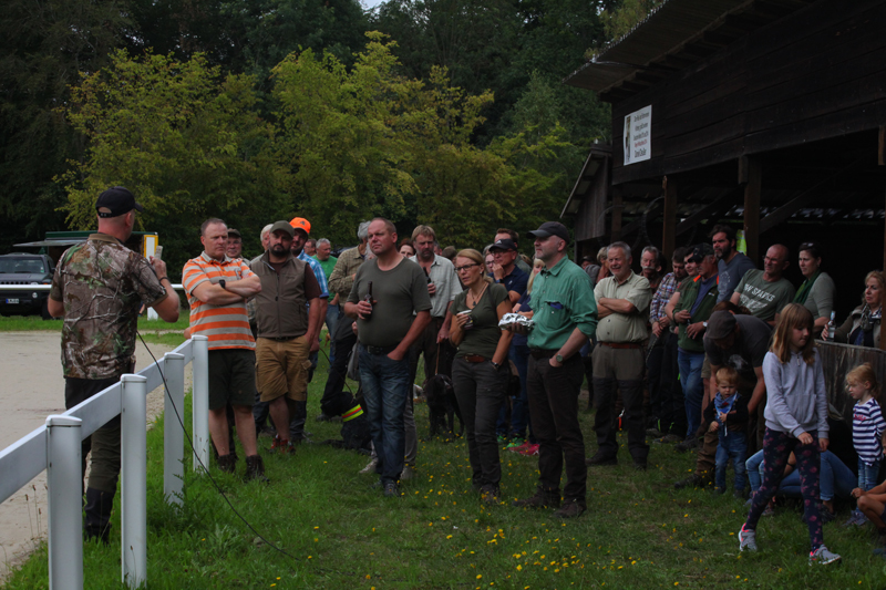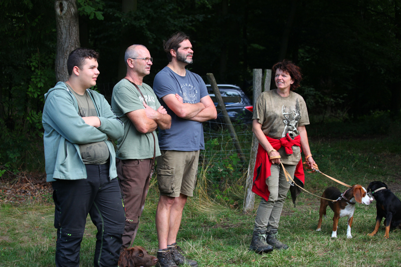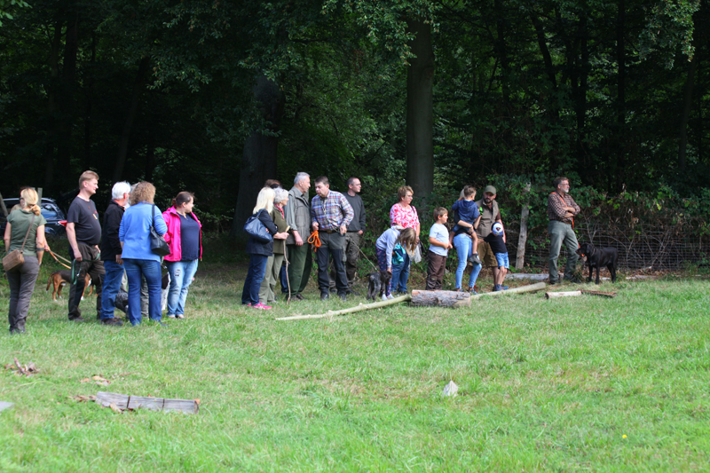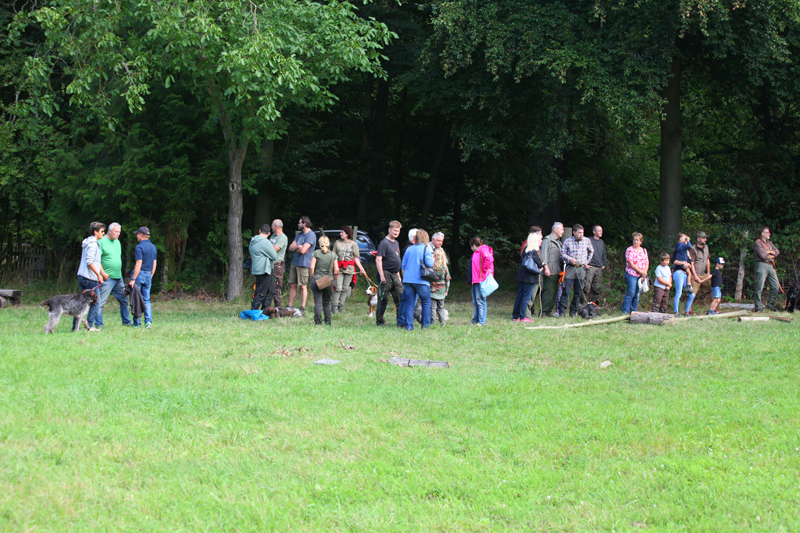 Die Wettervorhersage war gut, der Tag war angenehm und insbesondere für die Vierbeiner nicht zu heiß, so dass für diese ein Üben bei moderaten Temperaturen möglich war. Besucher mit ihren Hunden hatten im Verlauf des Tages die Gelegenheit, unter der Anleitung erfahrener Verbandsrichter den Übungsstand ihrer Hunde auf Fuchs-, Kanin- und Federwildschleppen zu überprüfen.