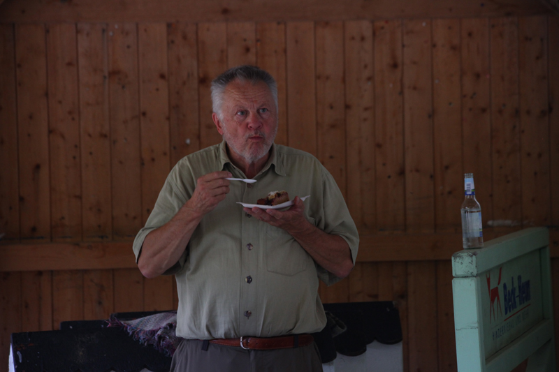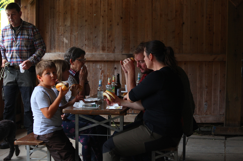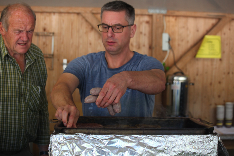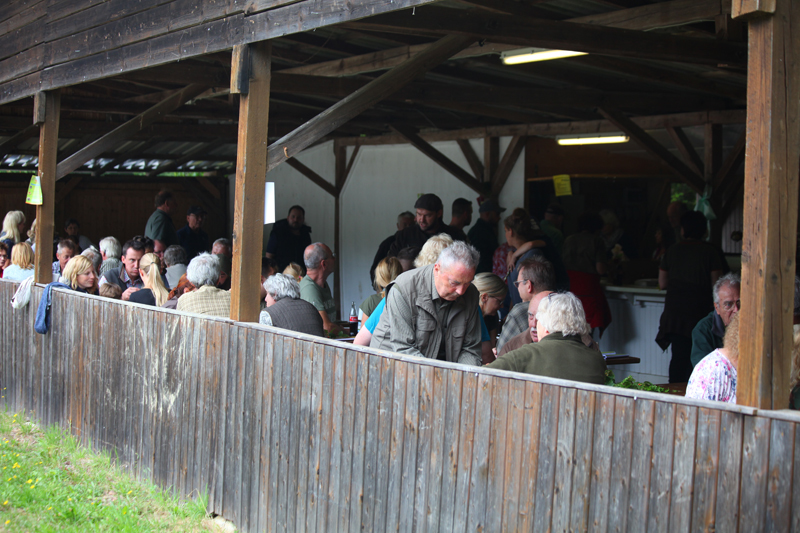 die Besucher mit Getränken, Wildbratwürsten und Steaks.