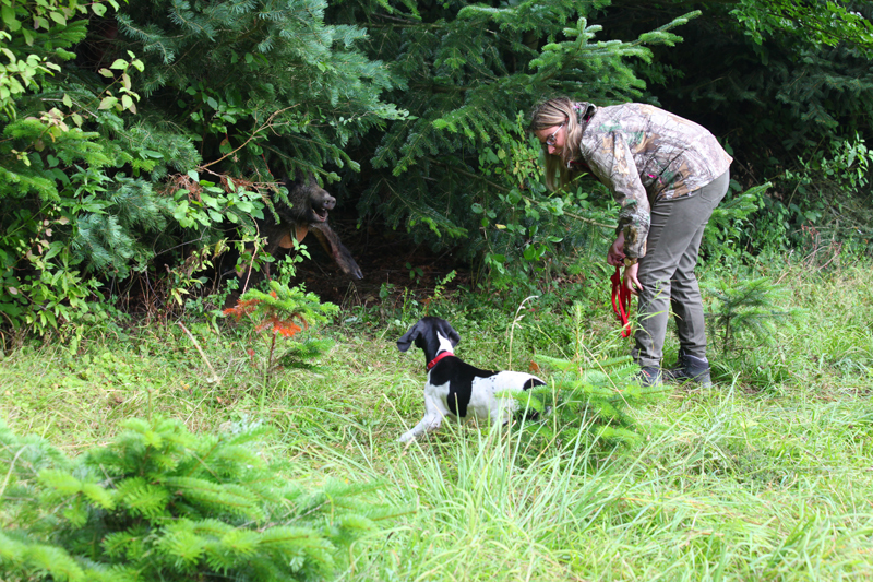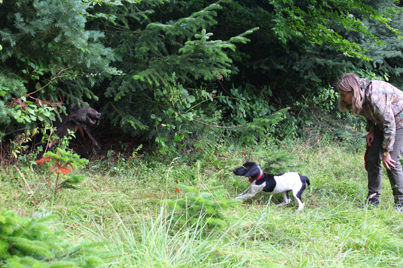 Die vierbeinigen Jagdhelfer hatten weiterhin die Möglichkeit, erste Erfahrung am Schwarzwild mit Hilfe der Pendelsau zu machen. Hier hatten nicht nur die Hundes, sondern auch die vielen Zuschauern ausreichend Anschauungsunterricht.