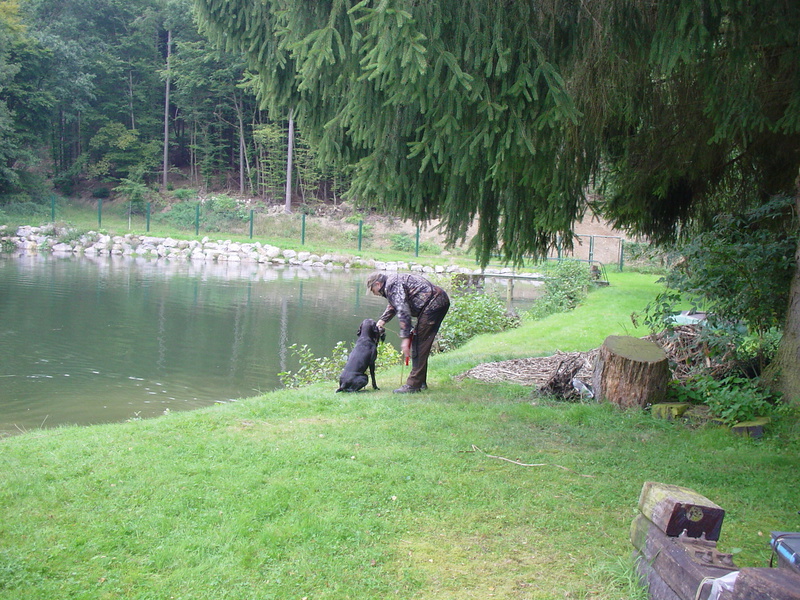 Impfpässe, der Tätowierungsnummern und der Jagdscheine. Von der Grillhütte aus fuhren wir dann an das Prüfungsgewässer. Hier fand die obligatorische offene Richterbesprechung unter Beteiligung der