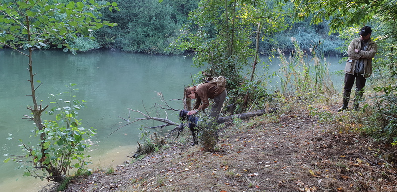 Hier konnte von unserer Gruppe leider nur ein Hund, die an ihn gestellten Forderungen erfüllen. Der zweite Hund zeigt sich schussscheu am Wasser und konnte demzufolge nicht weiter in der