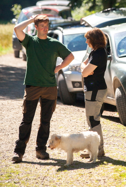 Am 10. Juli fanden sich alle 12 Teilnehmer bei hochsommerlichen Temperaturen am „Saugatter Louisgarde“ ein. Nach einer kurzen Ansprache und Einweisung des Gattermeisters mußten die ersten Gespanne auch schon los, da man den steigenden Temperaturen Rechnung tragen mußte. Nachdem alle Führer mit ihren Hunden an Sauen gearbeitet hatten, waren viele Hundeführer um Erfahrungen und Erkenntnisse reicher. Und die einhellige Meinung war: „Da ist noch viel Luft nach oben“. Kurzerhand beschloss, man dass es einen 2. Termin im Herbst geben sollte, um auf den gemachten Erfahrungen aufzubauen. Nicht zuletzt war man der Meinung, dass der Bewuchs im Herbst lichter sei und somit die Hunde besser auf Sicht jagen können.