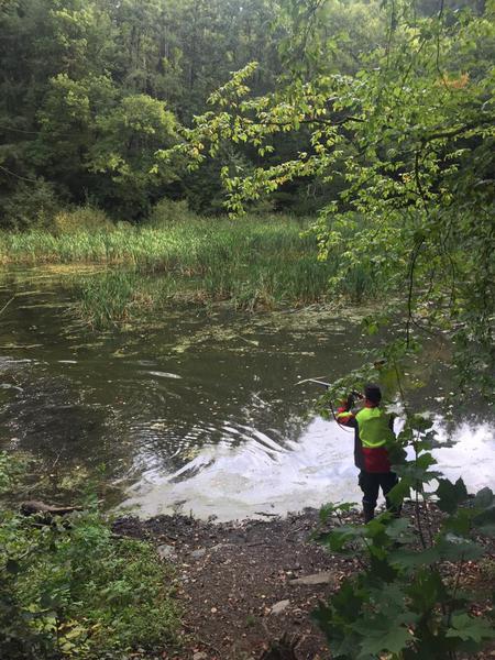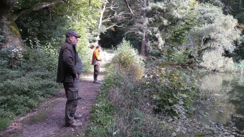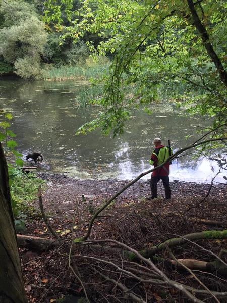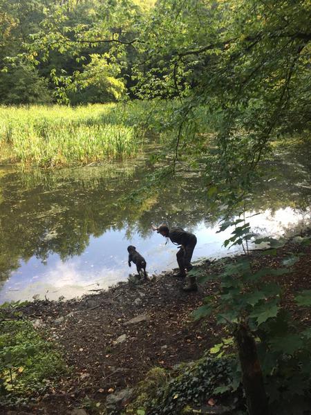 Der Schauer hatte aufgehört und die VPS-Gruppe steuerte den Schaumburger Weiher an. Die beiden Hunde erwiesen sich in kurzer Zeit als schussfest, das Stöbern und das Finden der ausgeworfenen Ente
