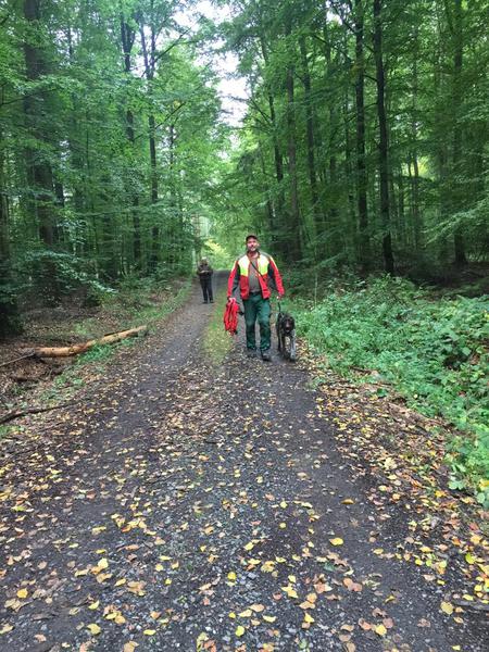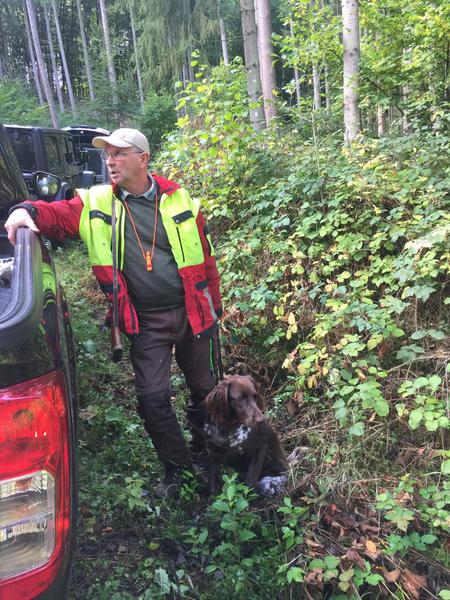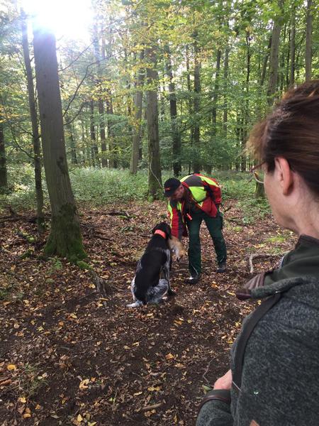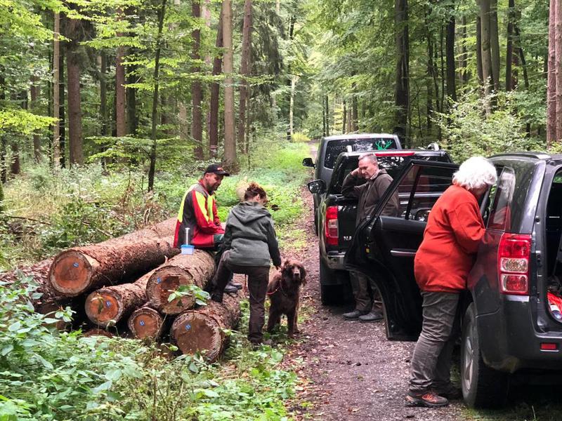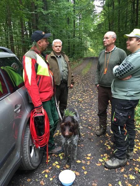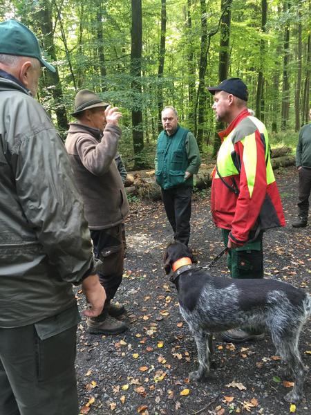 Waldfächer im Revier Hirschberg, das der Richterkollege Martin Löber zur Verfügung stellte. Es bot optimale Bedingungen für die arbeitsfreudigen Hunde, so dass Hundeführer und Richter frühzeitig und