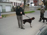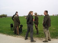 Bei nun schon 17 Grad C und weiterhin bewölktem Himmel fanden sich die zwei Prüfungsgruppen zwieschen 13 und 14 Uhr nach und nach im Suchenlokal ein. Von den vier erschienen Hundegespanne wurden alle vollständig durchgeprüft aber nur drei konnten sie diesjährige VJP bestehen. Da die Arbeit eines Hundes auf der Hasenspur leider nur eine Bewertung von 0 Punkten zuließ, konnte dieser die Prüfung nicht erfolgreich zum Abschluß bringen