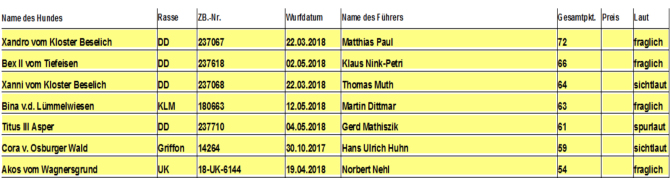 im Namen des Vorstandes und allen Hundeführern ein herzliches Dankeschön, sowie auch dem Revierführer in Marxheim.